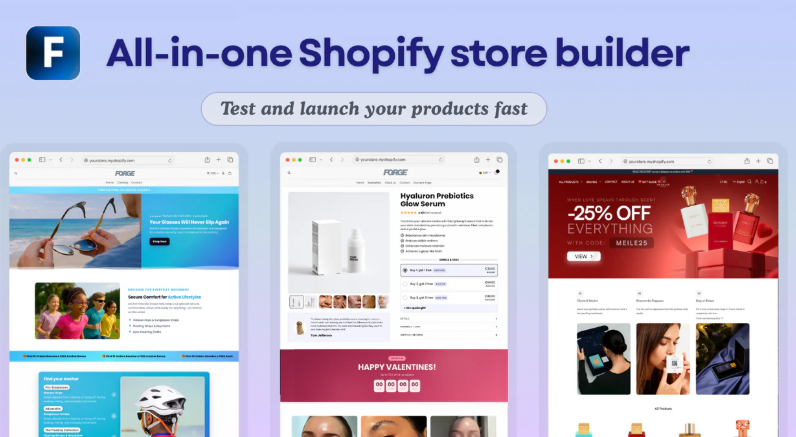 Forge generates a complete, styled Shopify store from a single product selection. Its AI writes the copy, designs the theme, and builds out all key pages automatically. What's particularly impressive is the image generation feature, which helps you create unique branded visuals without needing a graphic designer. It's especially useful for sellers who want a fresh, polished storefront for each product they test.